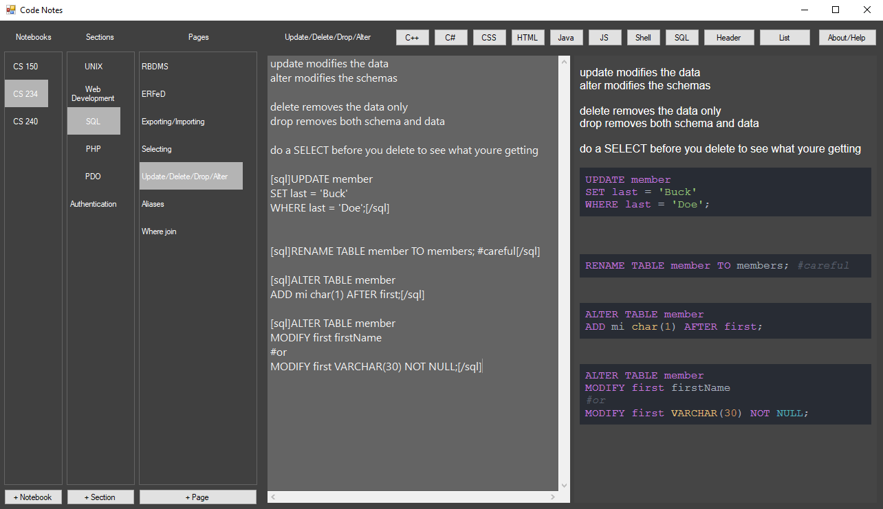 So I decided to try to make my own note-taking software to use that would make it easy to put code in, and make it look nice.