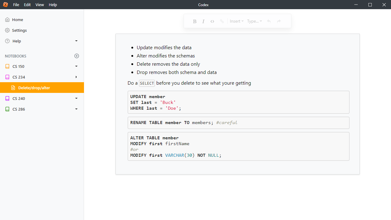 I started college last year, and I was using OneNote to take notes for my CS classes. It was pretty awkward to put code examples into the notes. I'd have to either paste code in and just change the font to Consolas (which would freeze the program for like 6 seconds) or paste in a screenshot if I wanted to get some color in there.